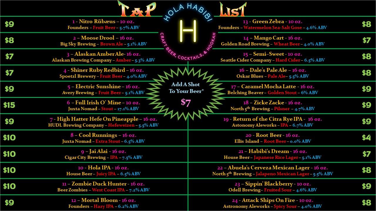 BEER by Angel Gonzalez | Mar 23, 2024 | Uncategorized | 0 comments BEERS click here COCKTAILS COCKTAILS HOOKAH HOOKAH BEERS COCKTAILS HOOKAH Featured hola beer Submit a Comment Cancel replyYour email address will not be published. Required fields are marked *Comment * Name * Email * Website Save my name, email, and website in this browser for the next time I comment. Δ
